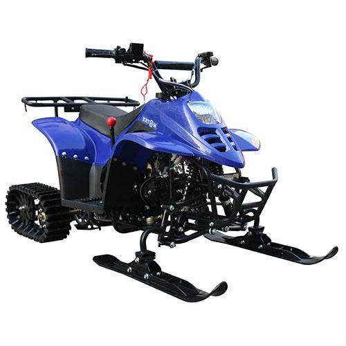 Снегоцикл Motax Micro Snow - это снегоход на гусеничном ходу, построенный на базе квадроцикла Motax Micro 110 cc. С возможностью переоборудования в полноценный квадроцикл на летний сезон.На данном снегоцикле сзади установлен гусеничный модуль, спереди установлены широкие лыжи из прочного пластика, с металлическим усилителем в основании. Он отлично подойдёт для детей, в возрасте от 5и до 12 лет.Снегоцикл оборудован 4х тактным двигателем, объёмом 110 куб. см., полуавтоматической трансмиссией с передачей заднего хода. Базовая комплектация включает в себя: электрический стартер, яркую переднюю фару с функцией ближнего и дальнего света, светодиодный задний фонарь со стоп сигналом, прочный задний багажник, гидравлический задний тормоз, тихий глушитель, чеку глушения двигателя, механический ограничитель скорости, кнопку экстренного останова двигателя, мягкий травмобезопастный пластик. Снегоцикл очень маневренный и имеет отличную управляемость.