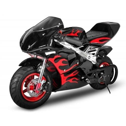 Минимото - это качественный маленький мотоцикл 50 куб.см. Предназначен как для взрослых, увлеченных минимото, так и для детей от 3-х лет (есть встроенный ограничитель скорости). Минимотоциклыотличаются более высоким изготовлением пластикового обвеса и комплектующих, разнообразием расцветок корпуса. В техническом плане представляет собой конструкцию с жесткими передней и задней подвеской, простым 2-х тактным бензиновым двигателем с принудительным воздушным охлаждением и автоматической трансмиссией (прямая передача и автоматическое центробежное сцепление). От более дешевых и простых версий отличается хромированной стальной боковой подножкой, прорезиненными складными подножками для ног водителя, более правильной геометрией рамы и разнообразием цветовой гаммы и чекой безопасности.